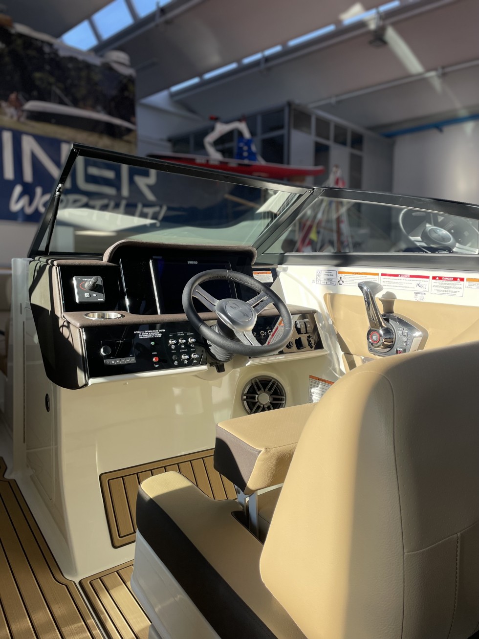 Captain’s Package: Tavolo in teak tondo, Cuscino di prua, Bimini Top, Ganci per parabordi, telo copri pozzetto e copri prua, doccia nel pozzetto, doccia di prua, luci di prua; Watersport Tower con Bimini; SeaDek piattaforma di poppa e pozzetto; Elica di prua; Piattaforma bagno manuale; Tavolo di prua; Wet bar con lavandino integrato; Luci pozzetto Led Lighting Blue; Frigorifero sotto cuscino (12 volt); Digital Dash w/Smartcraft Connect (12″); Verricello di prua con ancora e catena; Locale bagno separato.